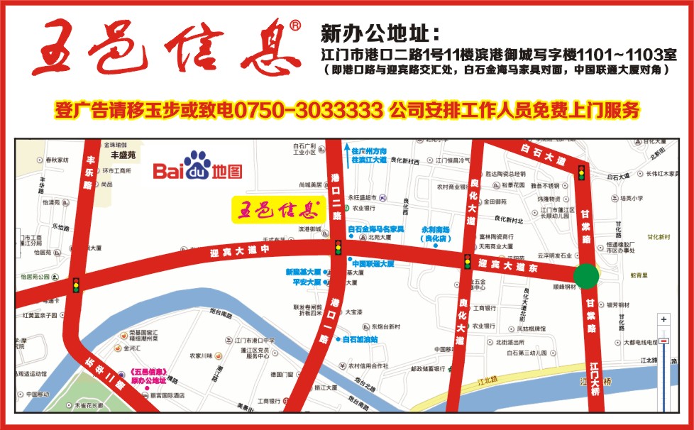 登广告请移玉步或致电0750-3033333 公司安排工作人员免费上门服务