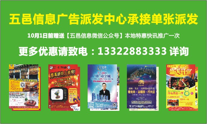 10月1日前赠送【五邑信息微信公众号】本地特惠快讯推广一次