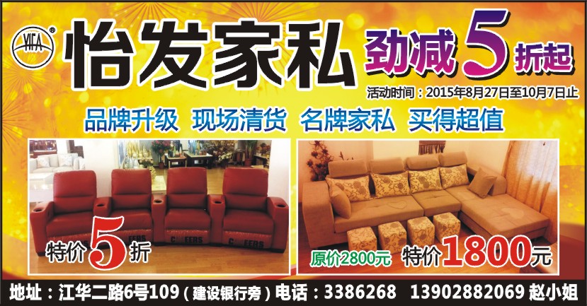 地址:江华二路6号109(建设银行旁)电话:3386268 13902882069 赵小姐