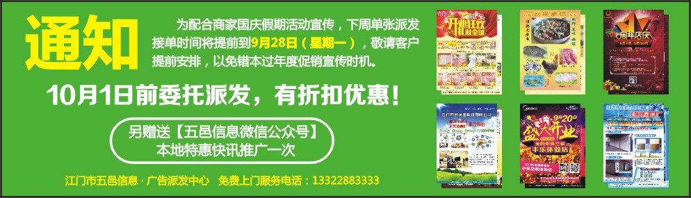 江门市五邑信息 · 广告派发中心 免费上门服务电话:13322883333