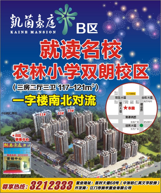 尊享热线:3212333 置业地址:里村大道68号(中加柏仁英文学校傍)开发商:江门市润禾置业有限公司
