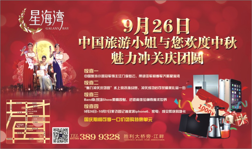 中国旅游小姐冠军得主江门李梦云,带领亚军和季军齐聚星海湾