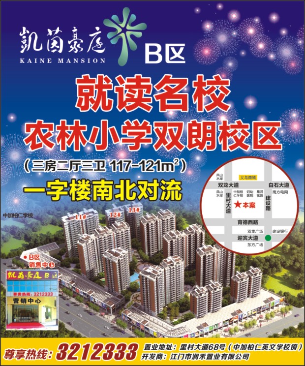 尊享热线:3212333 置业地址:里村大道68号(中加柏仁英文学校傍)开发商:江门市润禾置业有限公司