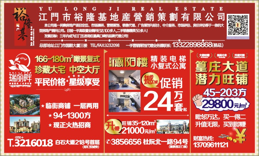 总部地址:江门市国顺大厦三楼 TEL/FAX:3232098 一手营销策划代理业务请联系:13322898868(杨总)