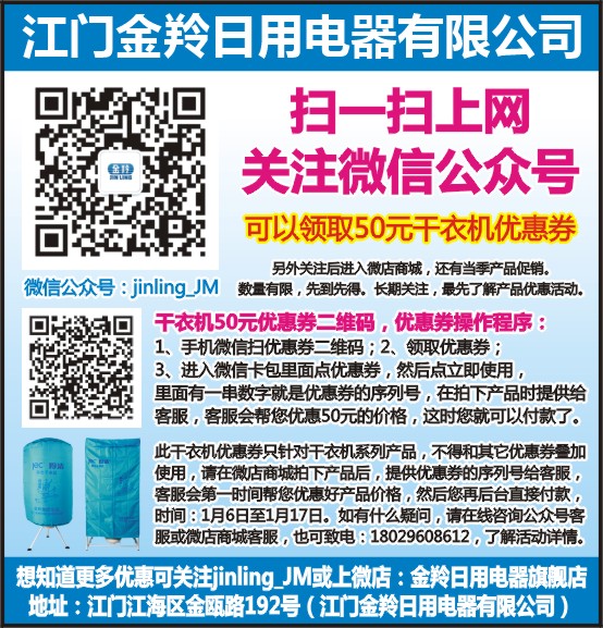 想知道更多优惠可关注jinling_JM或上微店:金羚日用电器旗舰店