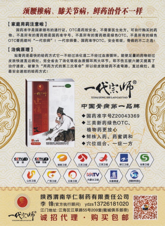 一代宗师安全有效,打造中国鲜药治骨第一品牌