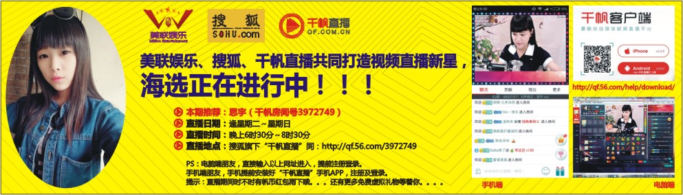 美联娱乐、搜狐、千帆直播共同打造视频直播新星,海选正在进行中!!!