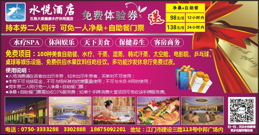 ●凭本券二人同行免一人净桑+自助餐门票;