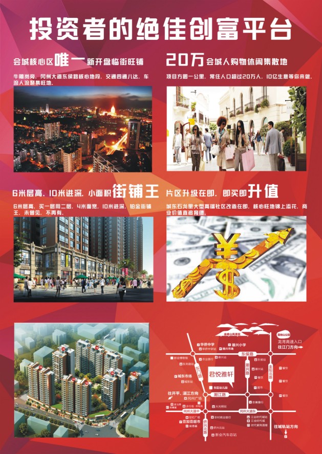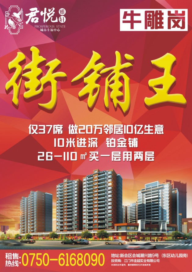 牛雕岗旁,冈州大道东侯路核心地段,交通四通八达,车流人流聚集旺地。