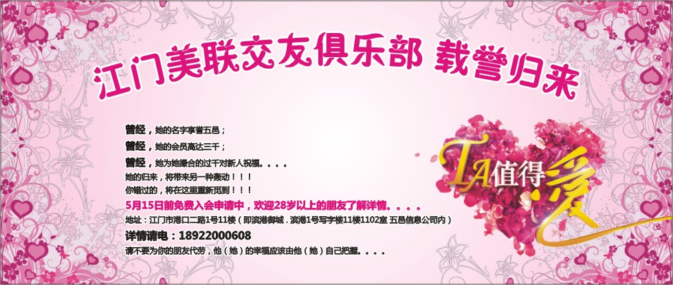 5月15日前免费入会申请中,欢迎28岁以上的朋友了解详情。。。。