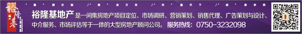 裕隆基地产是一间集房地产项目定位、市场调研、营销策划、销售代理、广告策划与设计、中介服务、市场评估等于一体的大型房地产顾问公司。服务热线:0750-3232098