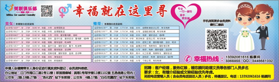 招聘:客户经理,服务红娘,婚恋顾问助理文员等各部门人员多名
