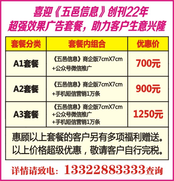 喜迎《五邑信息》创刊22年 超强效果广告套餐,助力客户生意兴隆