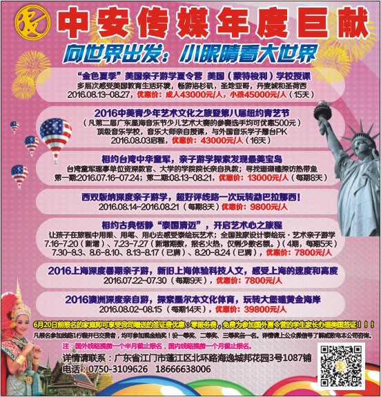 6月20日前报名的家庭即可享受我司赠送的签证费优惠:零服务费,免费为参加国外夏令营的学生家长办理美国签证!!!