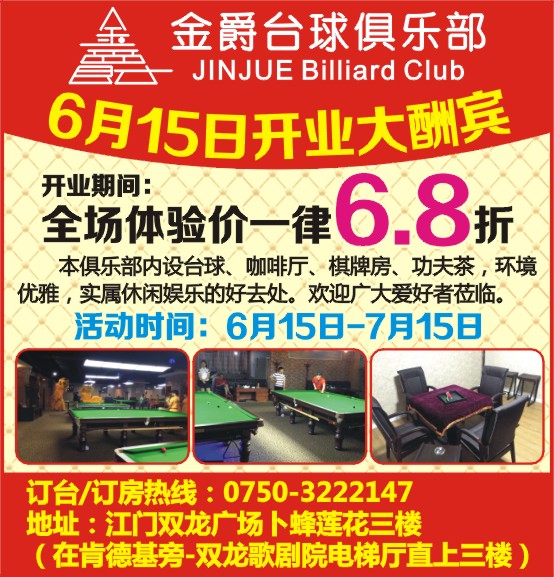 本俱乐部内设台球、咖啡厅、棋牌房、功夫茶,环境优雅,实属休闲娱乐的好去处。欢迎广大爱好者莅临。