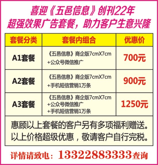 喜迎《五邑信息》创刊22年 超强效果广告套餐,助力客户生意兴隆