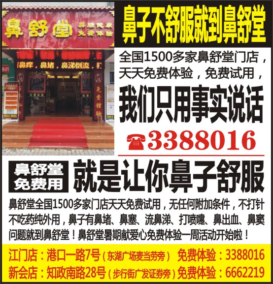 新会店:知政南路28号(步行街广发证券旁)免费体验:6662219
