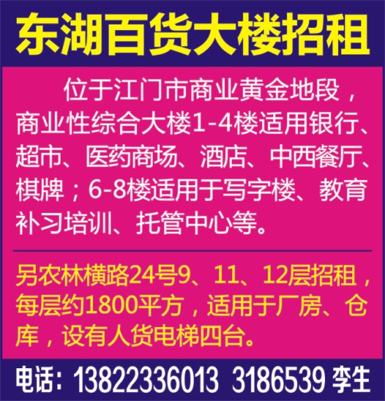 位于江门市商业黄金地段,商业性综合大楼1-4楼适用银行、超市、医药商场、酒店、中西餐厅、棋牌;6-8楼适用于写字楼、教育补习培训、托管中心等。