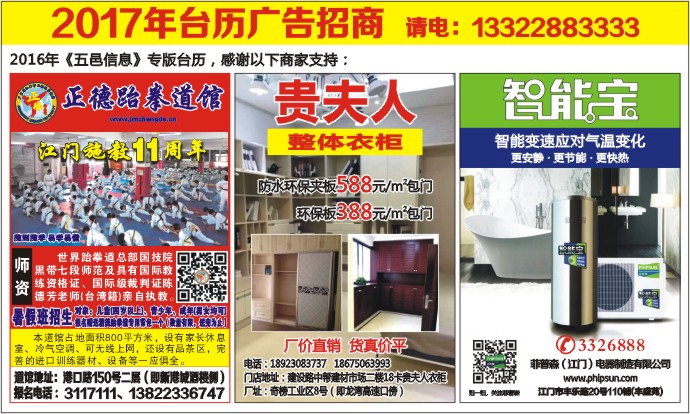2016年《五邑信息》专版台历,感谢以下商家支持: