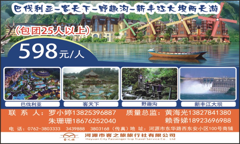 巴伐利亚-客天下-野趣沟-新丰江大坝两天游(包团25人以上)598元/人