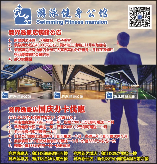 3、装修期间所有逸豪店会员可去竞界其他分店健身,并且在装修后补回装修期的会藉时间