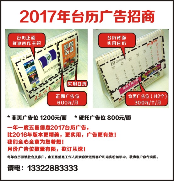 每年台历回馈社会及客户,由五邑信息工作人员亲自派送到客户和忠实粉丝手中,敬请客户自行完税。