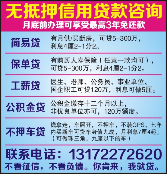 有购买人寿保险(任意一款均可),可贷5-300万,利息4厘2-1分2。