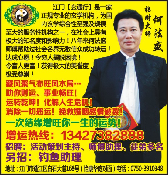 江门【玄通行】是一家正规专业的玄学机构,为国内玄学综合性至强及规模至大的服务性机构之一,在社会上具有极大的知名度和影响力!八年来何法盛师傅帮助过社会各界无数信众成功转运!达成心愿!令穷人摆脱困境!令富人更富!获得极大的美誉度,极受尊崇!
