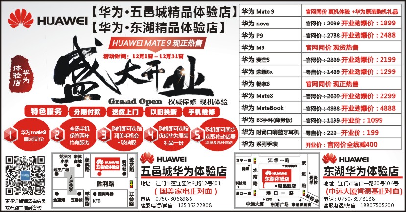 华为 荣耀6x 零售价:1499 开业劲爆价:1299