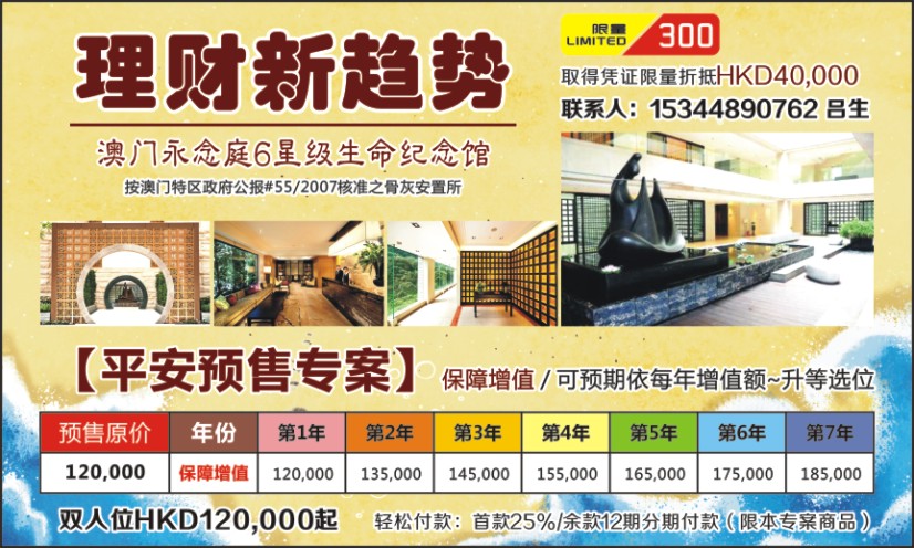 按澳门特区政府公报#55/2007核准之骨灰安置所