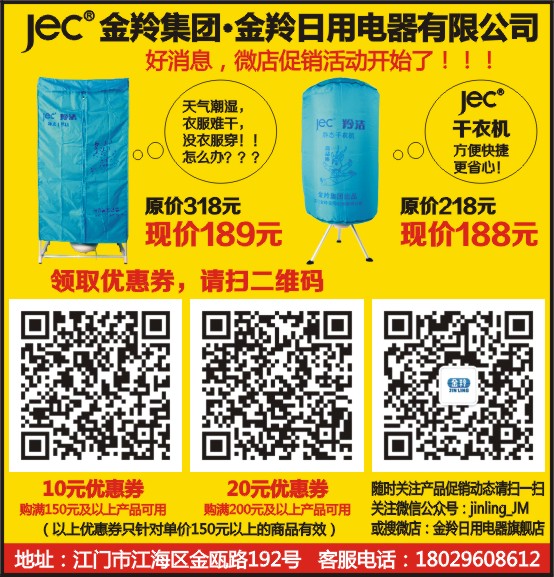随时关注产品促销动态请扫一扫关注微信公众号:jinling_JM或搜微店:金羚日用电器旗舰店