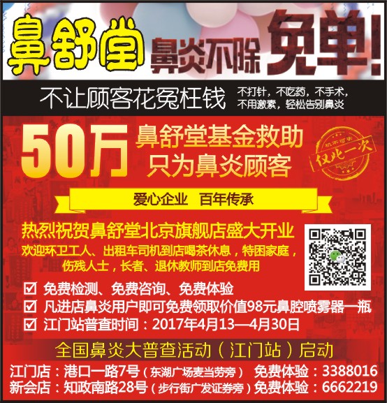 江门店:港口一路7号(东湖广场麦当劳旁) 免费体验:3388016