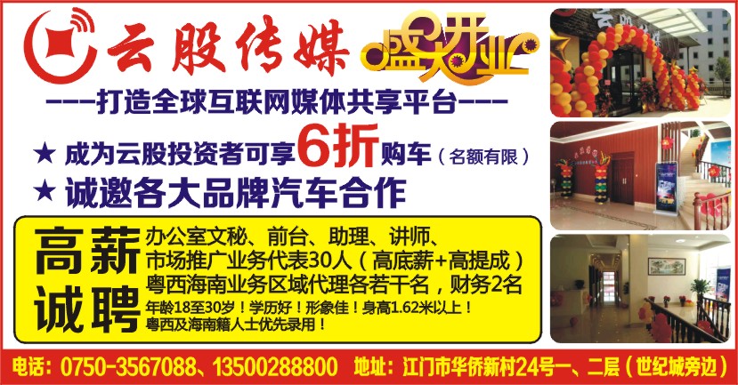 办公室文秘、前台、助理、讲师、市场推广业务代表30人(高底薪+高提成)粤西海南业务区域代理各若干名,财务2名