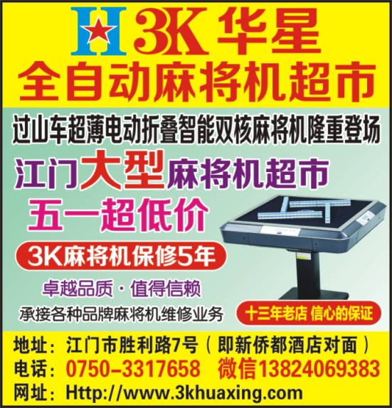 地址:江门市胜利路7号(即新侨都酒店对面)