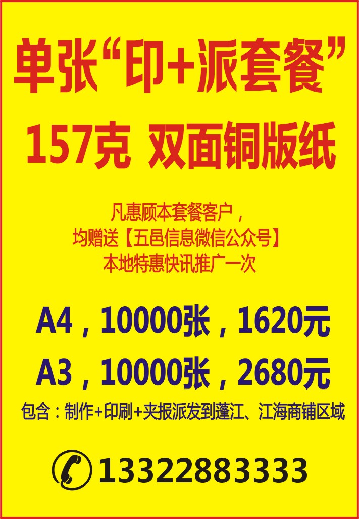 包含:制作+印刷+夹报派发到蓬江、江海商铺区域