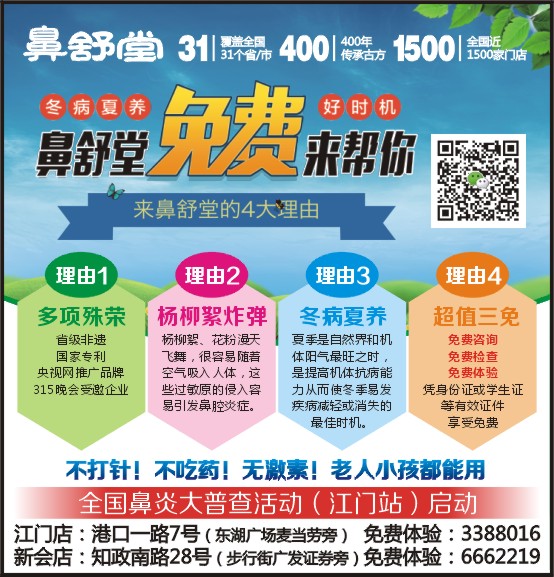 江门店:港口一路7号(东湖广场麦当劳旁) 免费体验:3388016