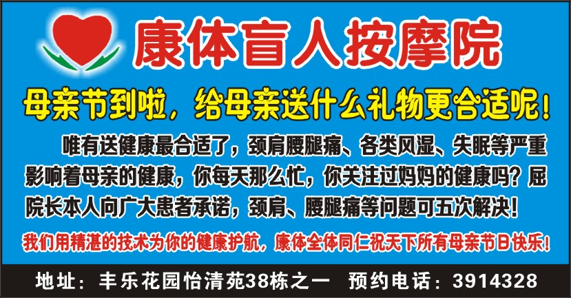 我们用精湛的技术为你的健康护航,康体全体同仁祝天下所有母亲节日快乐!