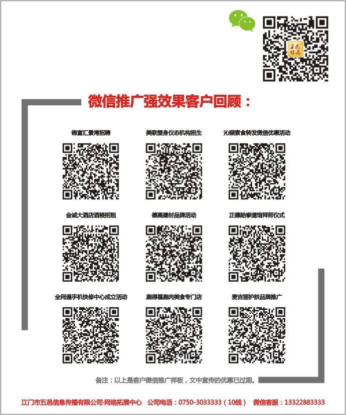 江门市五邑信息传播有限公司·网络拓展中心 公司电话:0750-3033333(10线) 微信客服:13322883333