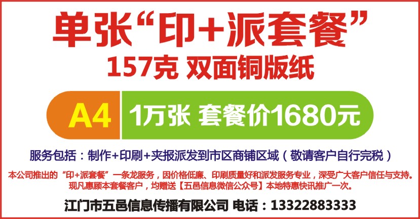现凡惠顾本套餐客户,均赠送【五邑信息微信公众号】本地特惠快讯推广一次。