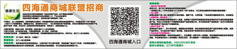 互联网时代的发展,只有强强联手才能实现共赢!四海通商城就是你们的优选平台。共享平台,做江门人自己的商城。