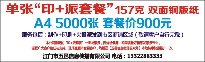 现凡惠顾本套餐客户,均赠送【五邑信息微信公众号】本地特惠快讯推广一次。