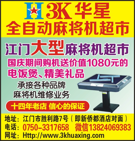 地址:江门市胜利路7号(即新侨都酒店对面)