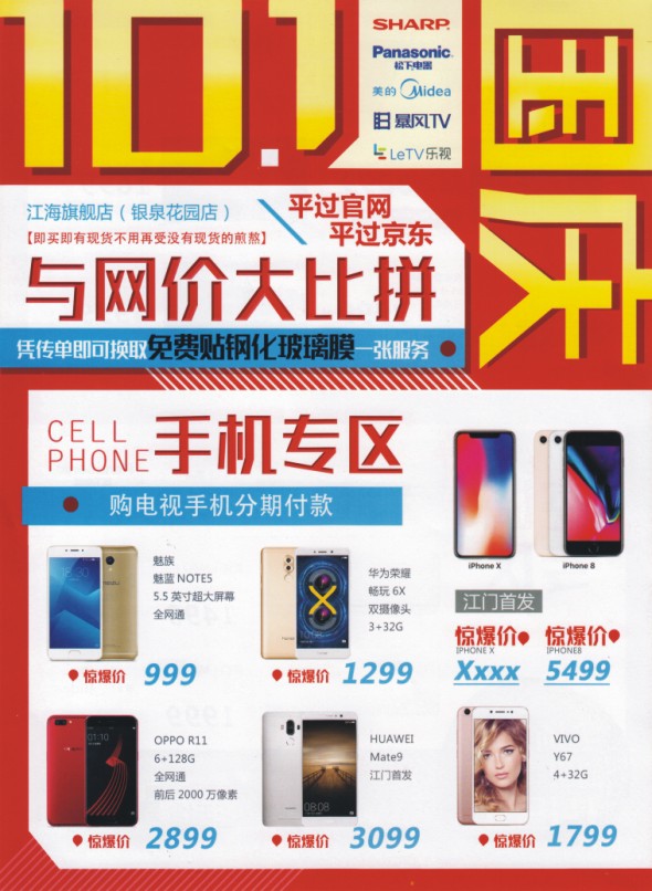 凭传单即可换取免费贴钢化玻璃膜一张服务