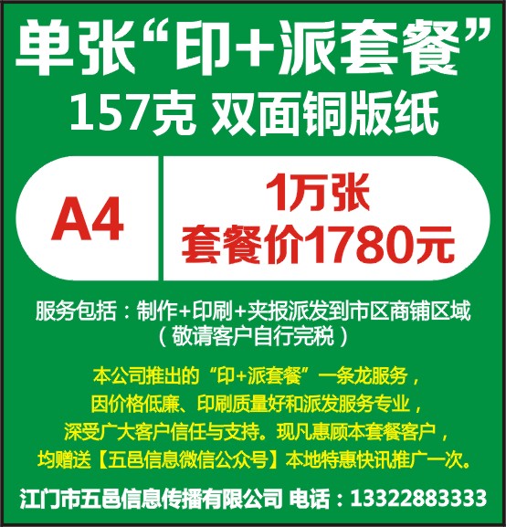 现凡惠顾本套餐客户,均赠送【五邑信息微信公众号】本地特惠快讯推广一次。