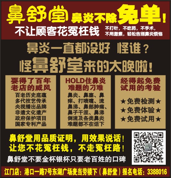 江门店:港口一路7号东湖广场麦当劳楼下(鼻舒堂)报名电话:3388016