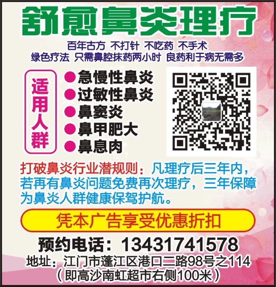 打破鼻炎行业潜规则:凡理疗后三年内,若再有鼻炎问题免费再次理疗,三年保障为鼻炎人群健康保驾护航。