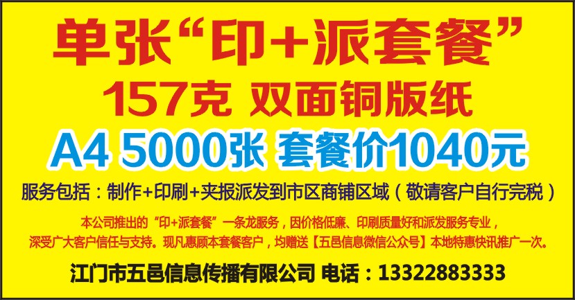 现凡惠顾本套餐客户,均赠送【五邑信息微信公众号】本地特惠快讯推广一次。